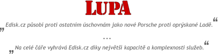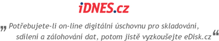 eDisk je online datová úschovna, se kterou můžete Vaše soubory nejen zálohovat, posílat a sdílet. Nově můžete vytvářet s Vašimi přáteli a kolegy i společné datové sítě. eDisk snadno zvládne i soubory, které se do mailu nevejdou. Vyzkoušejte eDisk zadarmo s bezplatným účtem.